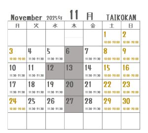 2日(木)、9日(木)、16日(木)、22日(水)、23日(木)、30日(木)