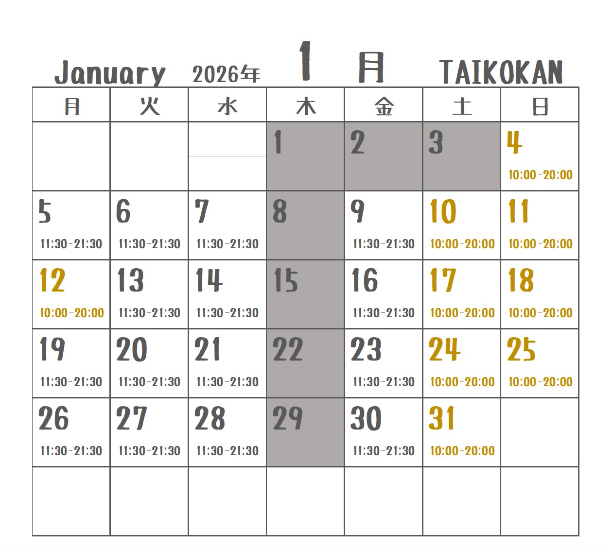 (土日祝)10:00~20:00